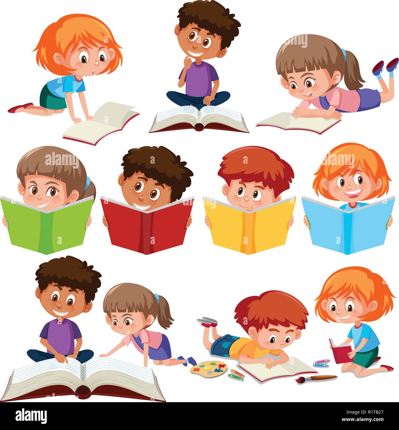 Children Reading Books Vector Illustration Royalty Free Cliparts Vectors And Stock Illustration Image 41835821