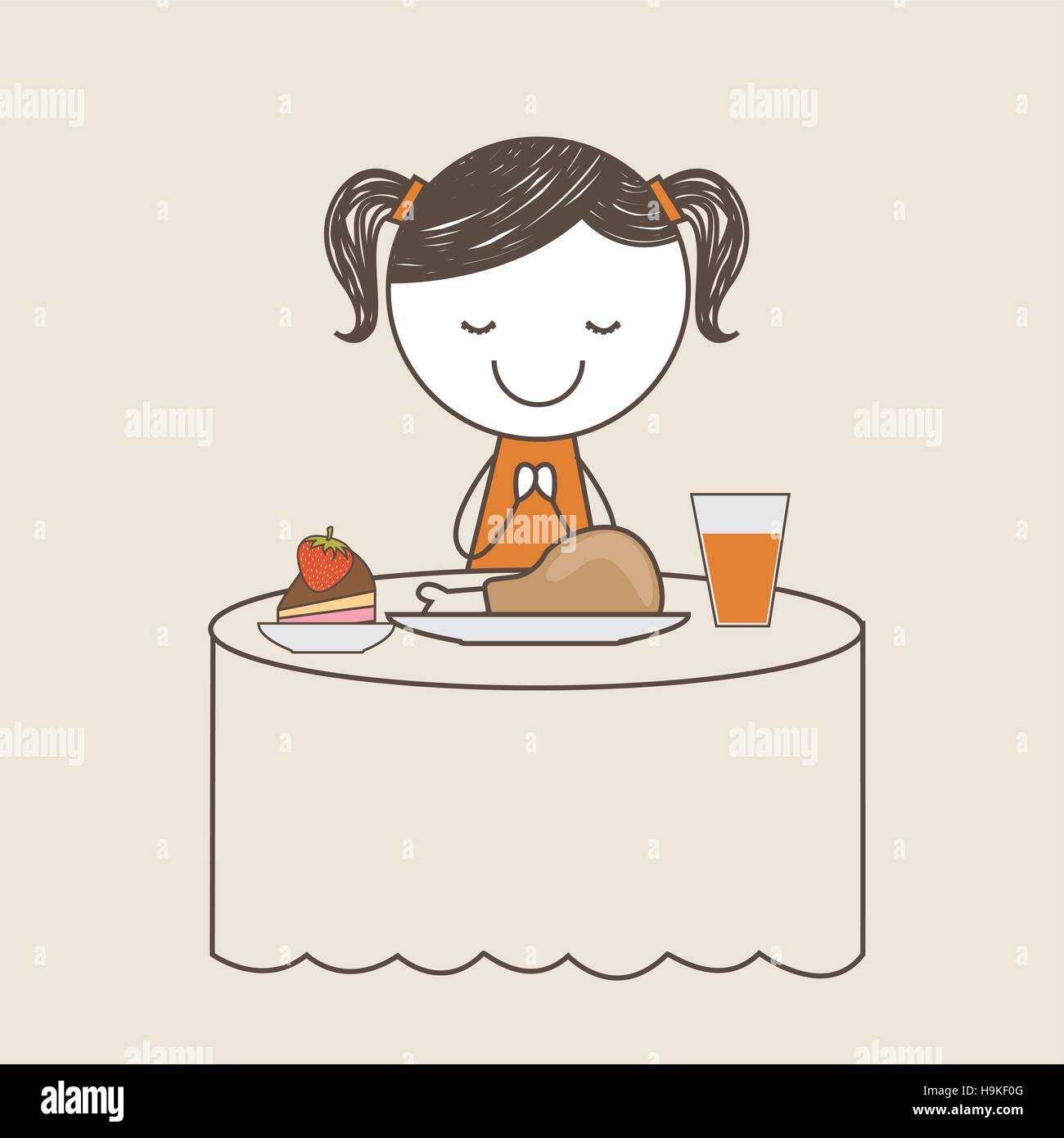 Cute Girl Praying For Food In The Table Draw And Colorful Design Vector Illustration Stock Vector Image Art Alamy