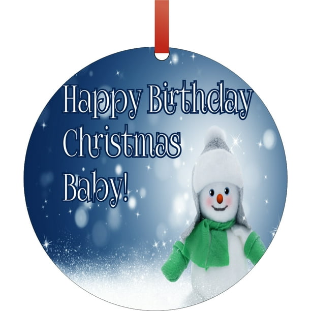 Happy Birthday Christmas Baby Snowman Double Sided Round Shaped Flat Aluminum Glossy Christmas Ornament Tree Decoration Unique Modern Novelty Tree Decor Favors Walmart Com Walmart Com